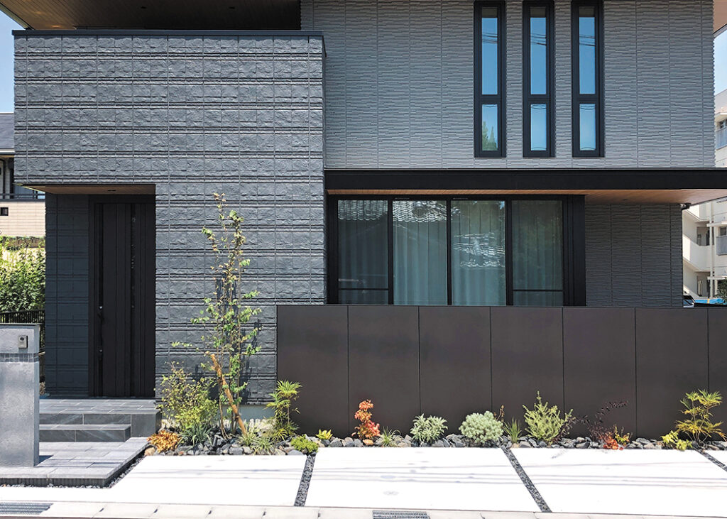 門袖にエバーアートボード(ラスティコッパー)を使って、門まわりのカラーコーディネートを楽しむ